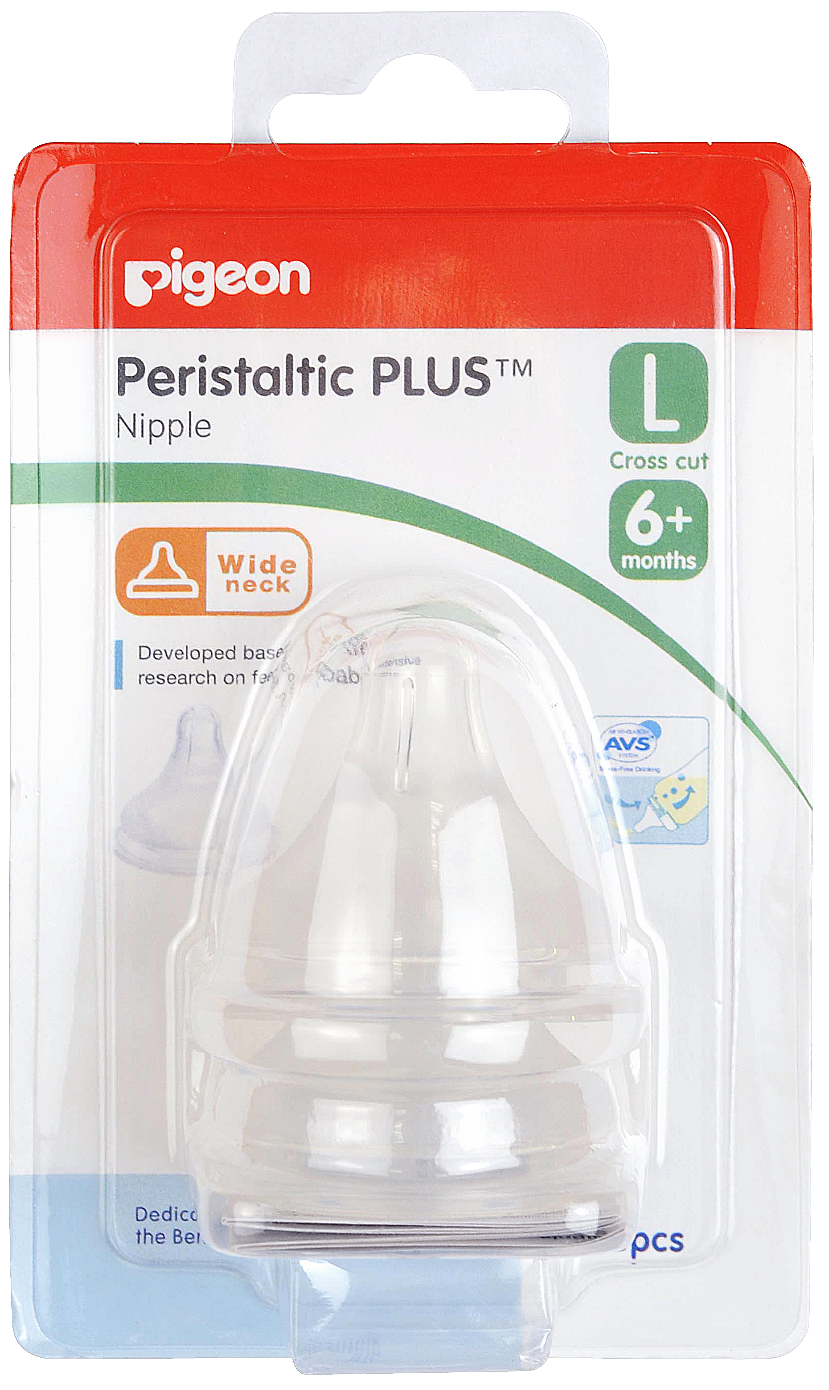 Соска Перистальтик Плюс PIGEON д/бутылки с широк.горлом, отверст.L (6+мес),2шт. Предназначена для детей от 6 месяцев. Уникальная конструкция соски позволяет воспроизводить естественные сосательные движения ребенка, состоящие из 3-х ключевых этапов: захват ареолы соска, движение языка для извлечения молока и глотание определённого количества молока, что обеспечивает надежную поддержку грудного вскармливания. Запатентованный клапан (антиколиковая система) выравнивает давление внутри бутылочки. Размер соски индивидуален для ребенка и соответствует возрасту и развитию малыша.