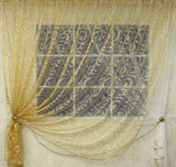 Золотой, салатовый, бордовый и серебряный цвет органзы удачно впишется в Ваш интерьер.