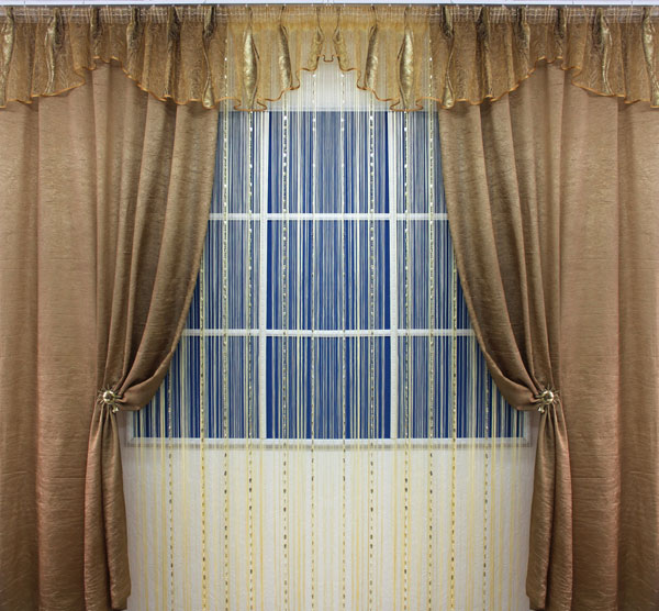 Шторы "Лира" Можно доукомплектовать органзой и вуалью любой ширины кратно одному метру или нитевыми шторами как на фото.