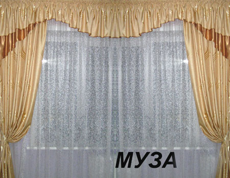 Комплект штор "Муза" изготавливается из однотонной портьерной ткани. В стандартный набор "Муза" входят две теневые шторы и ламбрекен.