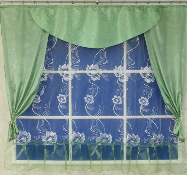 Шторы для кухни "Ева" отшиваются из остатков вуали или органзы. При заказе определённого цвета этой модели мы сошьём шторы,в которых будет присутствовать заявленный заказчиком цвет. Также шторы для кухни "Ева" можно заказать из блестящей жатки:
