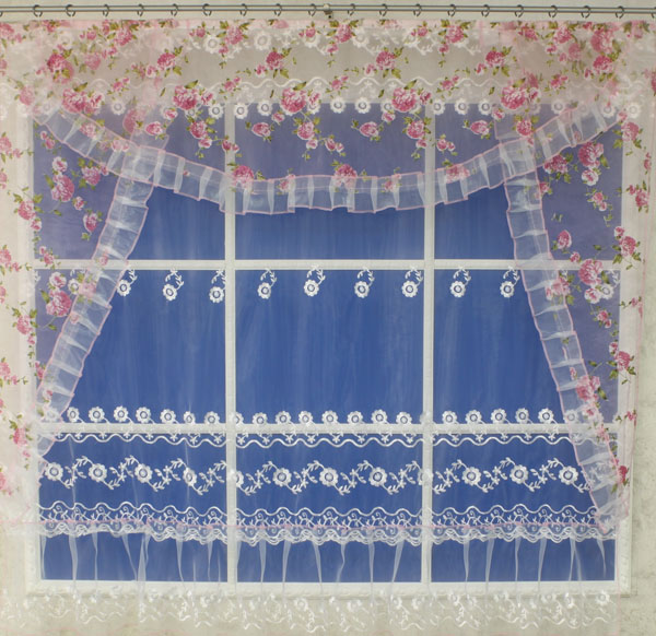 Шторы для кухни "Ева" отшиваются из остатков вуали или органзы. При заказе определённого цвета этой модели мы сошьём шторы,в которых будет присутствовать заявленный заказчиком цвет. Также шторы для кухни "Ева" можно заказать из блестящей жатки: