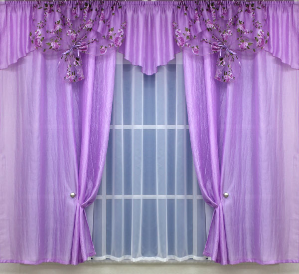 ламбрекен фигурный, комбинированный из однотонной жатки и и печатной органзы