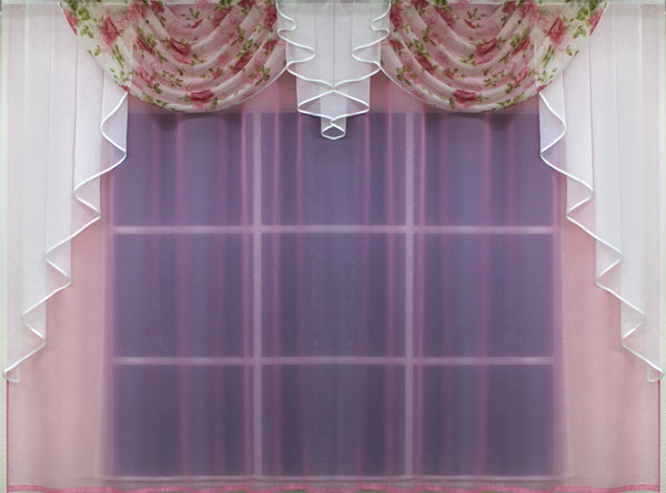 Кухонный комплект Ирена отшивается из однотонной и печатной вуали.