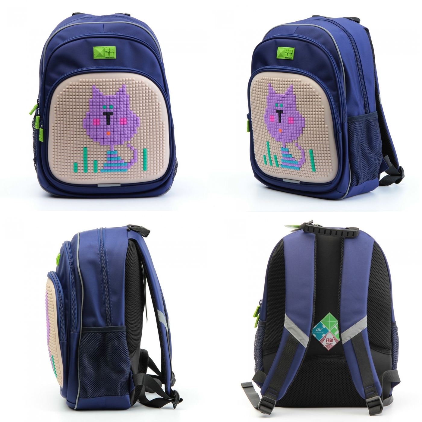 Матрица, расположенная на рюкзаке, предназначена для закрепления на своей поверхности маленьких элементов - битов, благодаря которым можно с легкостью создавать разнообразные картинки, писать слова и многое-многое другое!