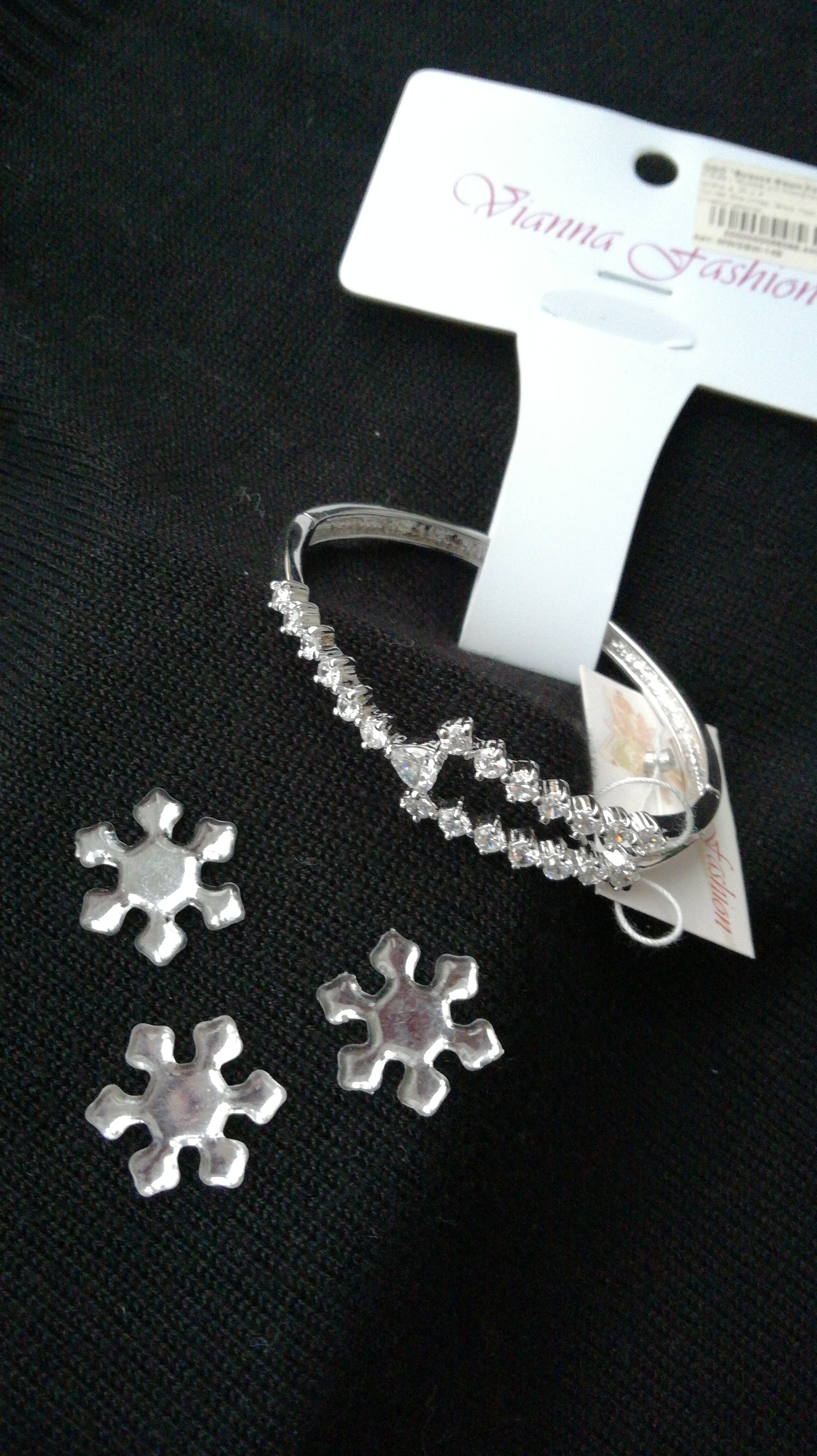 Изделие с гальваническим покрытием белым золотом и вставками из фианитов и цирконов.